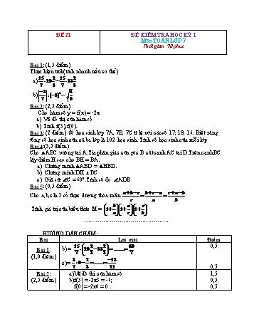 Đề kiểm tra học kì 1 Toán Lớp 7 - Đề 21 (Có đáp án)
