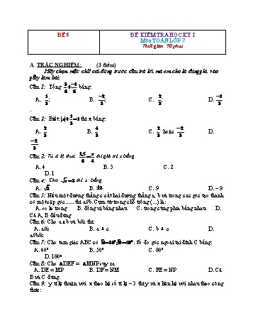 Đề kiểm tra học kì 1 Toán Lớp 7 - Đề 6 (Có đáp án)