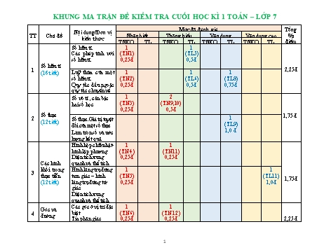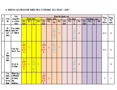 Kiểm tra cuối học kì 1 Toán Lớp 7 - Năm học 2022-2023 - Trường THCS Lê Lợi (Có đáp án và hướng dẫn c