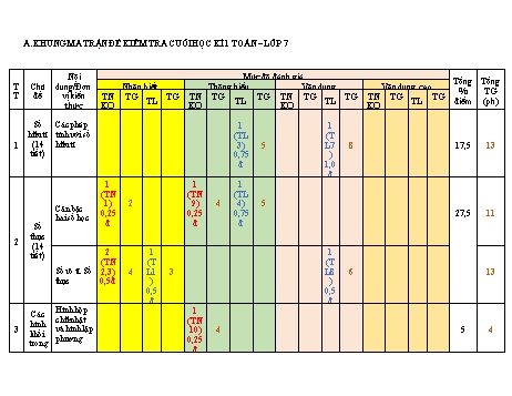 Đề kiểm tra cuối học kì 1 Toán Lớp 7 - Năm học 2022-2023 - Trường THCS Trần Đăng Ninh