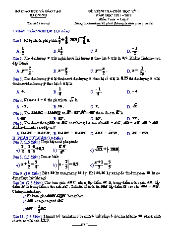 Đề kiểm tra cuối học kỳ I môn Toán học Lớp 7 - Năm học 2021-2022 - Sở GD&ĐT Bắc Ninh (Có đáp án)